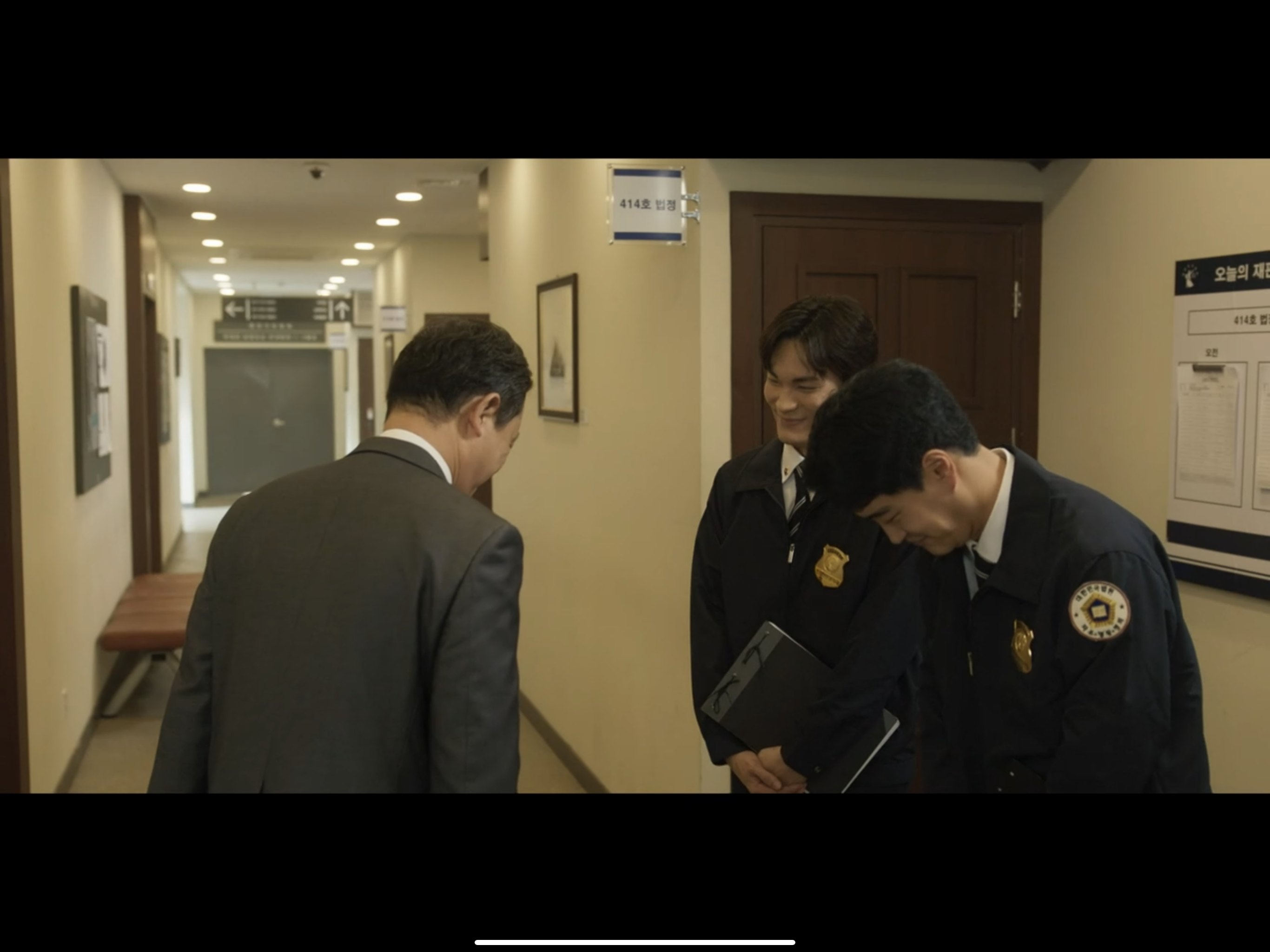 2명 공무원 : 판사님 오늘도 제일 일찍 출근하셨네요.